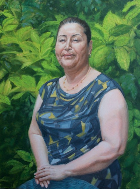 The art exhibit showcases several paintings created by Betsy. Through the art exhibit, she introduces viewers to the lives of people she has met from different countries who have immigrated and now live in the United States. The portraits depict real people with real lives that come from a variety of different cultures.