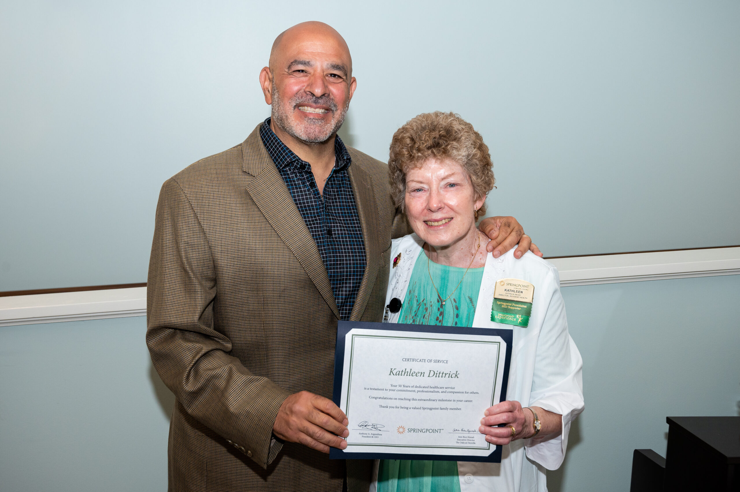 Guests enjoyed a concert from the Morris Music Men, an award-winning a cappella choral group. The Morris Music Men choral group, of which Kathy’s husband is a member, gave a concert dedicated to her 50-year nursing milestone. Springpoint President and CEO Anthony Argondizza, Springpoint Vice President of Health Services Odessa Sadsad, and The Oaks at Denville Executive Director Ann Ricci Kenah were each on hand to celebrate Kathy’s accomplishment.