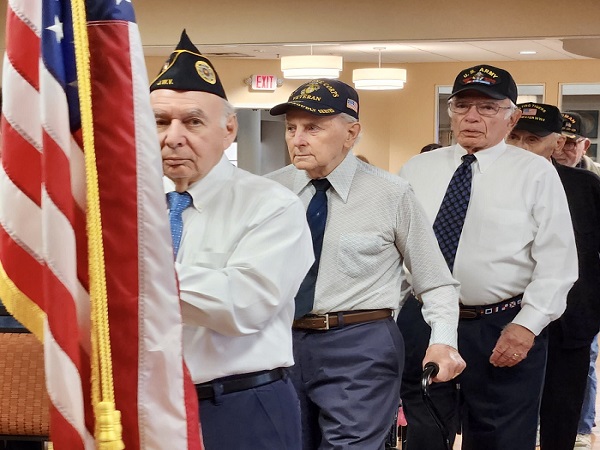 Winchester Gardens hosted a touching ceremony with remarks from Executive Director Susan Lippy and a performance by the Winchester Singers. Residents gathered to raise the American flag outside of the community prior to the ceremony. Veterans and loved ones were then invited to an intimate luncheon.