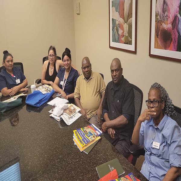 Jacinta Carcamo, Andre Guerrier, Enold Cadet, Genoveva Cruz, Yisset Herrera Cruz, Marie Coq, Veronique Sylvain, and Viviane Langes are the first Stonebridge at Montgomery employees to participate in the ESL program and will be graduating in a few months.